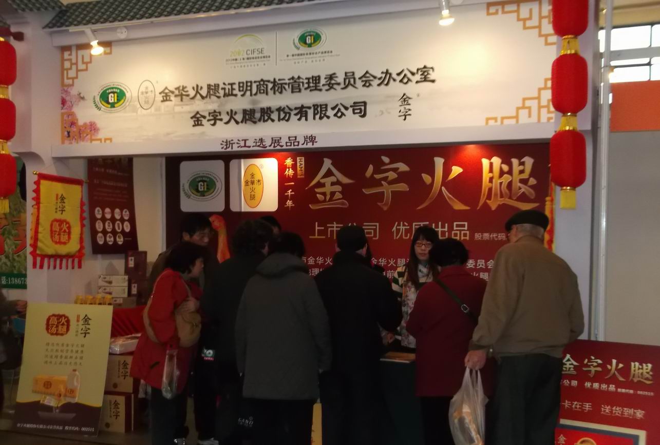 近日,首屆中國國際地理標志產品博覽會在上海展覽中心舉行,全國30多個省市(自治區)160多個地理標志產品亮相。金字火腿作為浙江省16家地理標志產品之一代表金華火腿參展。此次展會由國家工商行政管理總局、上海市人民政府、中國國際貿易促進委員會、中國國際商會、中國民族貿易促進會主辦,規??涨埃状稳嬲故玖酥袊牡乩順酥井a品。