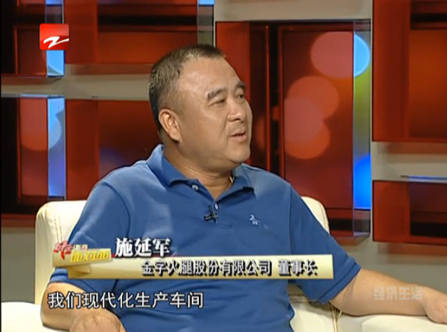 8月23日播出的《風(fēng)云浙商面對(duì)面》收視率迎來一個(gè)新高,這期節(jié)目邀請(qǐng)到了一位特殊的嘉賓——金字火腿股份有限公司董事長(zhǎng)施延軍。如何將“浙江三寶“之一的金華火腿產(chǎn)業(yè)做到上市,為何能在風(fēng)靡中國(guó)的《舌尖上的中國(guó)》紀(jì)錄片中亮相,怎樣將火腿這一產(chǎn)業(yè)做到與歐洲一樣?施延軍董事長(zhǎng)在節(jié)目進(jìn)行中向觀眾逐一解答,并首次在電視媒體上回顧了金字20多年的發(fā)展歷程。